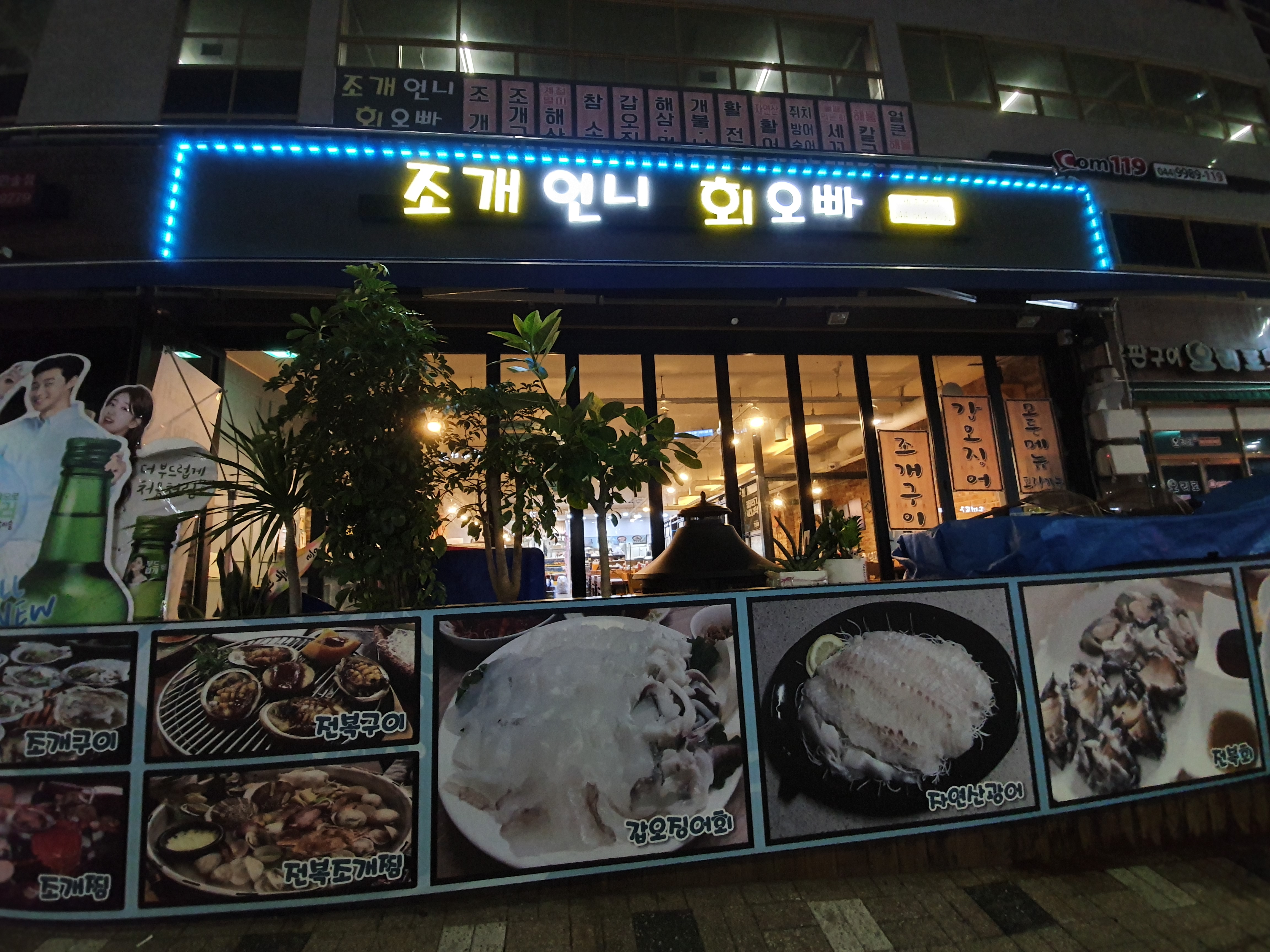 조개 언니 회 오빠라는 가게명은 개인적으로는 별 고민 없이 만든 이름이 아닌가 해서 좀 아쉽지만 누가 들어도 조개와 회를 판다는 것은 알 것 같은 가게명이다.