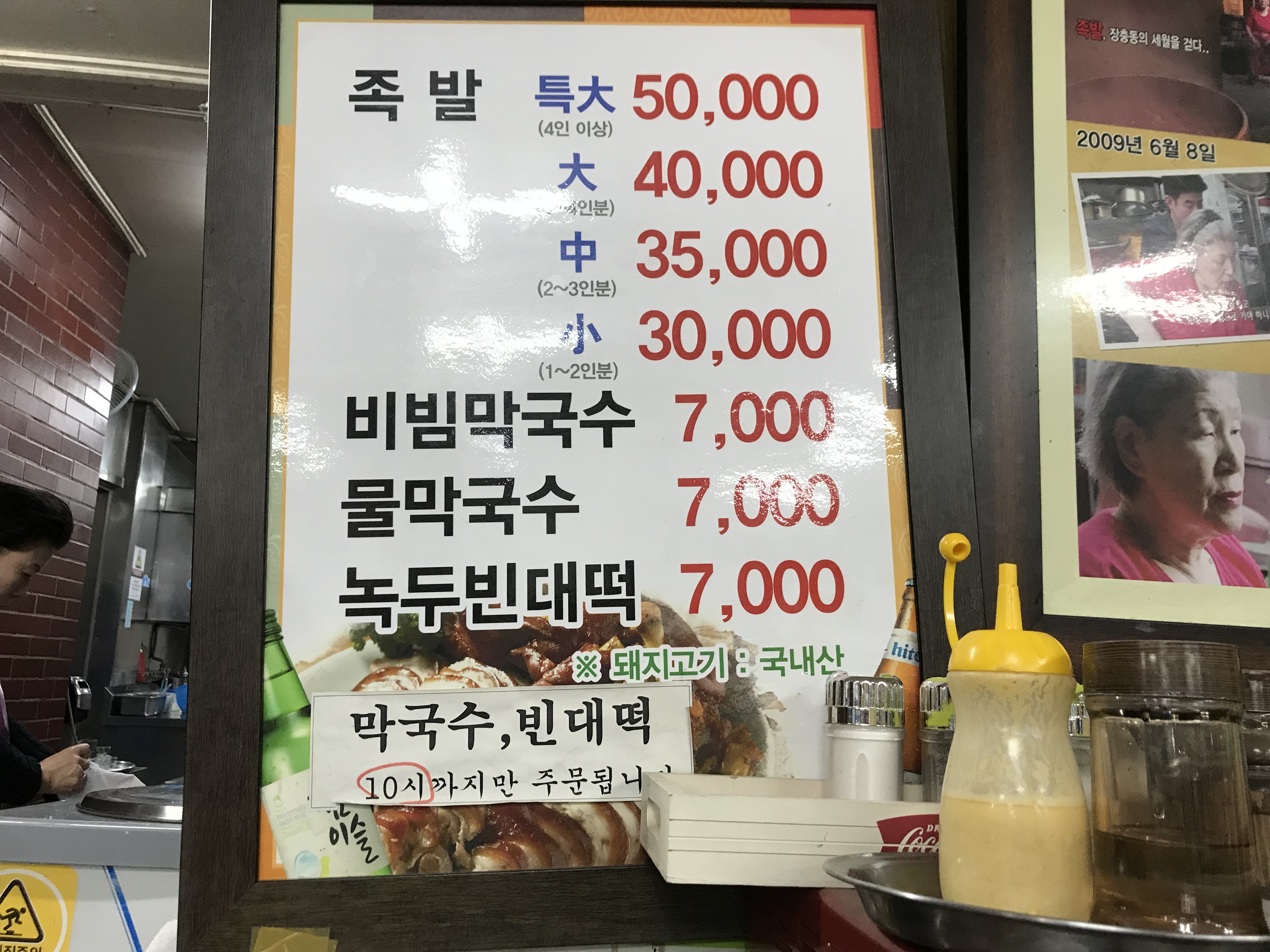 평안도 족발집의 메뉴다. 족발 시세보다 비싸지도 싸지도 않은 가격이다.