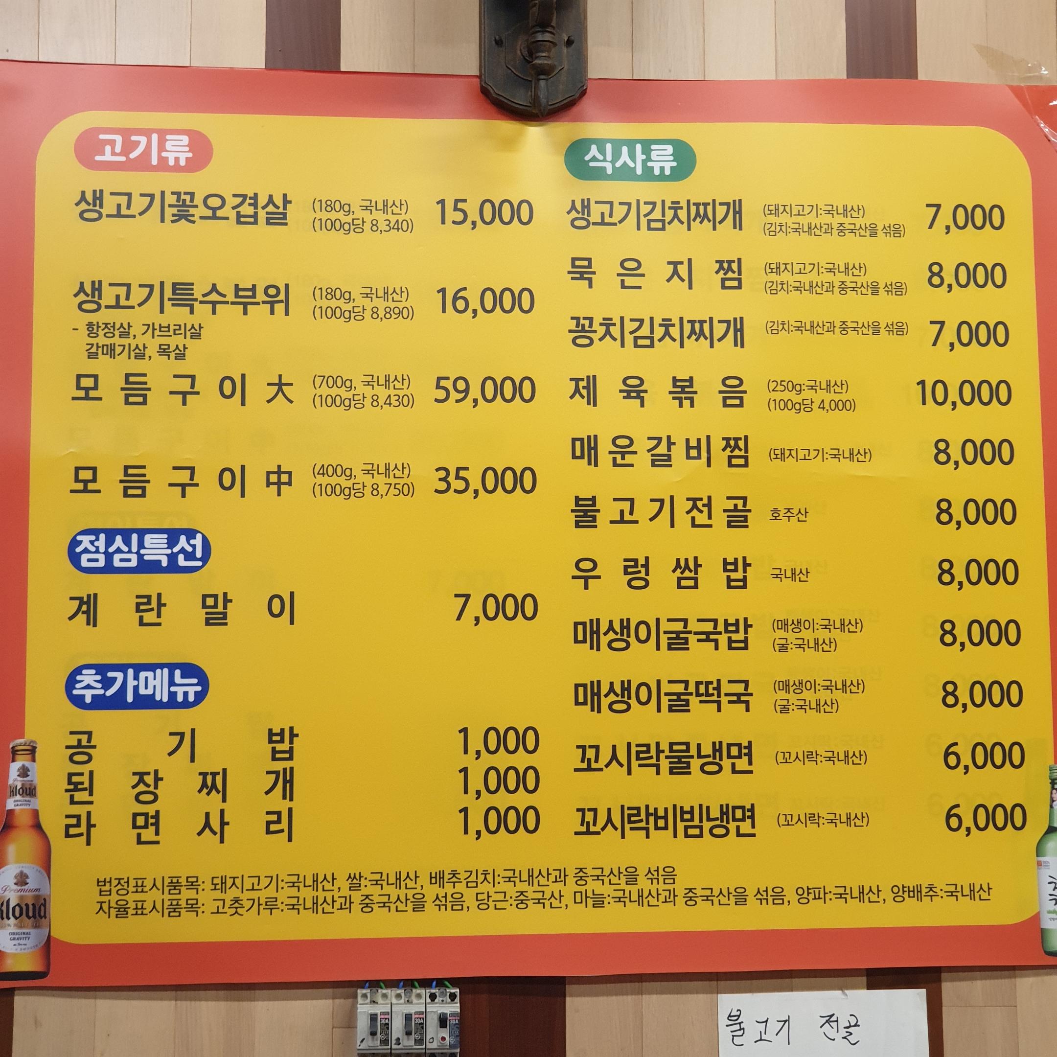 메뉴판이다. 후배가 생고기특수부위와 생고기 꽃 오겹살을 시켰다. 특수부위는 항정살, 가브리살, 갈매기살, 목살로 구성되어있다.