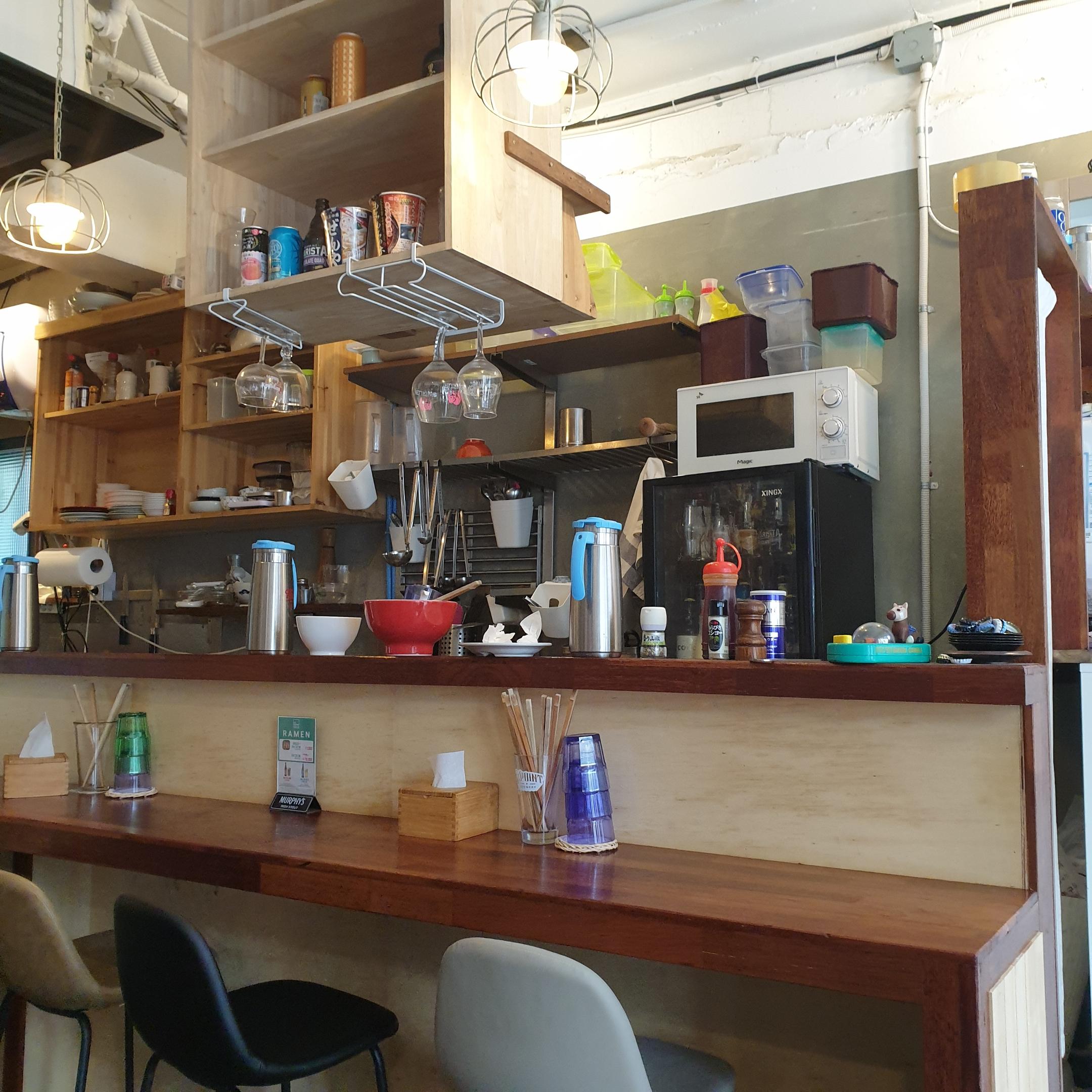 들어서면 일본의 라디오 방송이 나오고 목재로 만든 기다란 바와 좁은 통로가 굉장히 일본스러운 느낌이다.