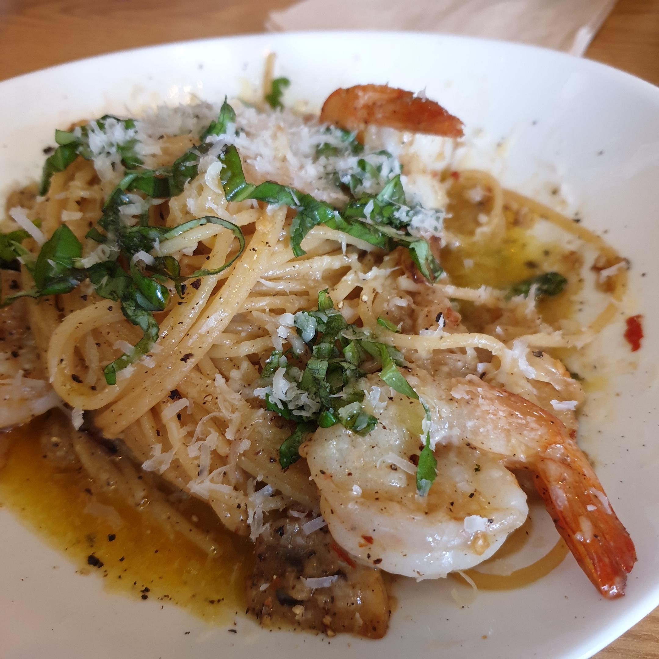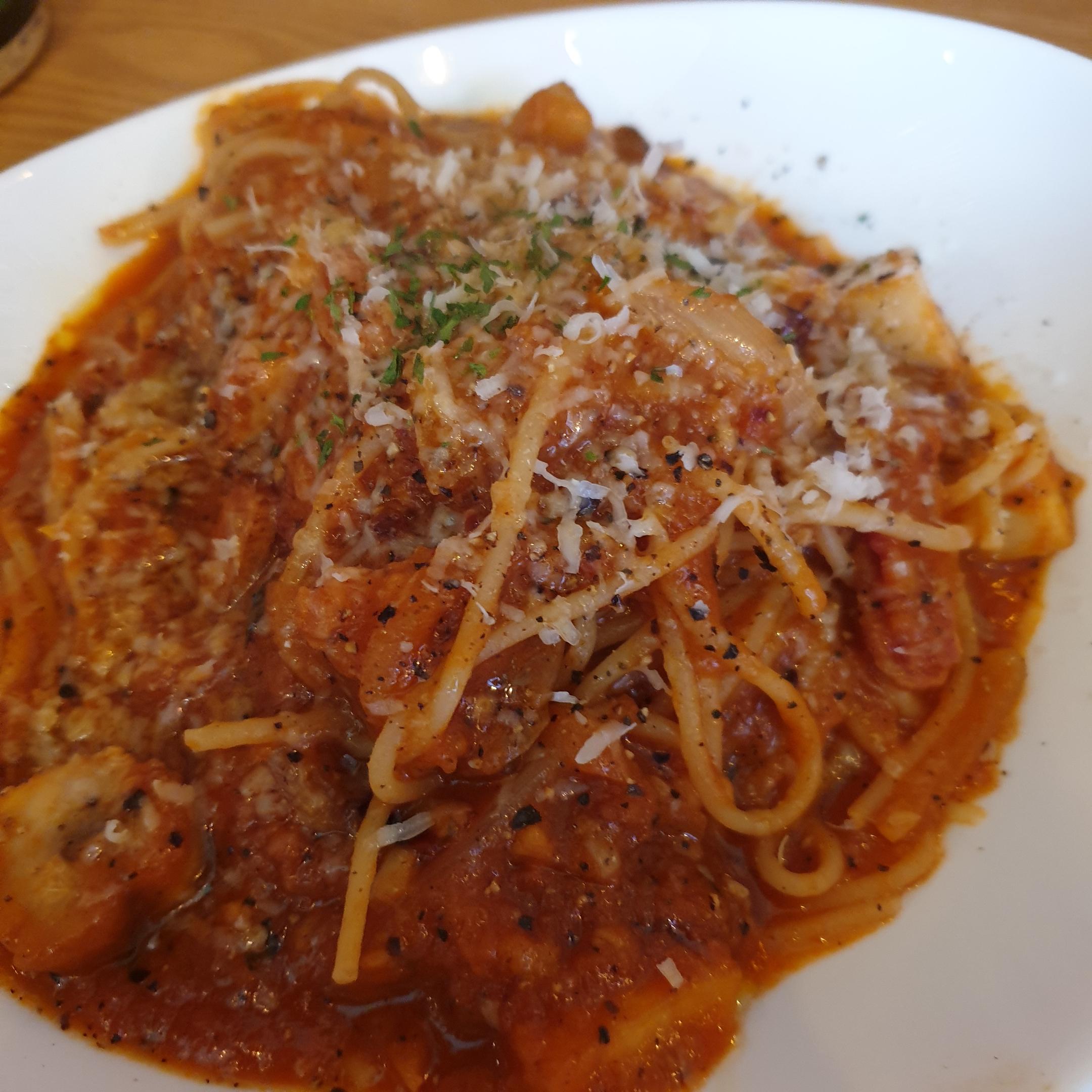 아마트리치아나는 꽤 핫한 맛이었어요. 아내는 매운맛을 좋아하는데 저는 매운맛을 그리 즐기지는 않아서 한 입 먹고 말았습니다. 새우마늘오일파스타는 정말 취향저격이었습니다. 통통한 새우 살과 탱탱한 면발, 그리고 구수한 마늘향이 배인 신선한 올리브오일이 너무 좋았습니다.