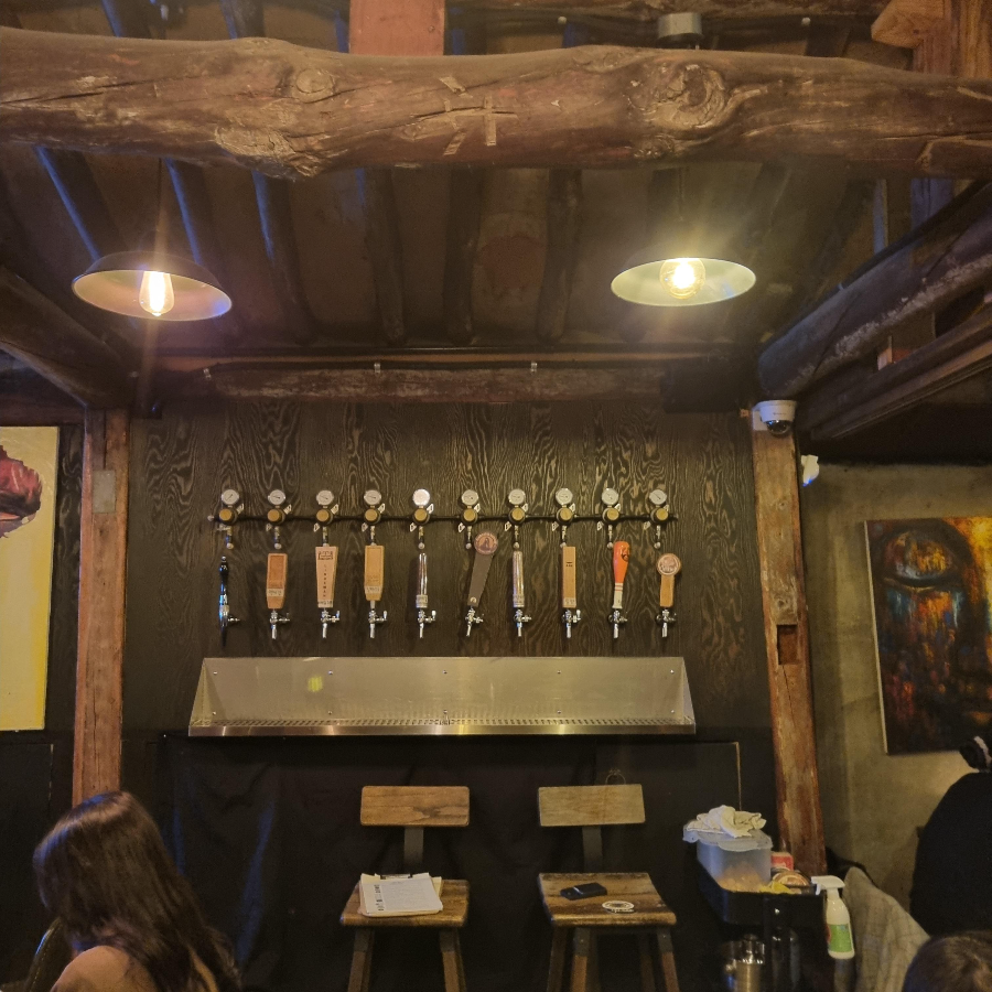 맥주탭은 10개가 꽂혀있다. 저 탭 뒤로 맥주의 신선도를 지켜줄 냉장고가 있으며, 그 안에 맥주가 케그안에 잘 보관되어 있다.